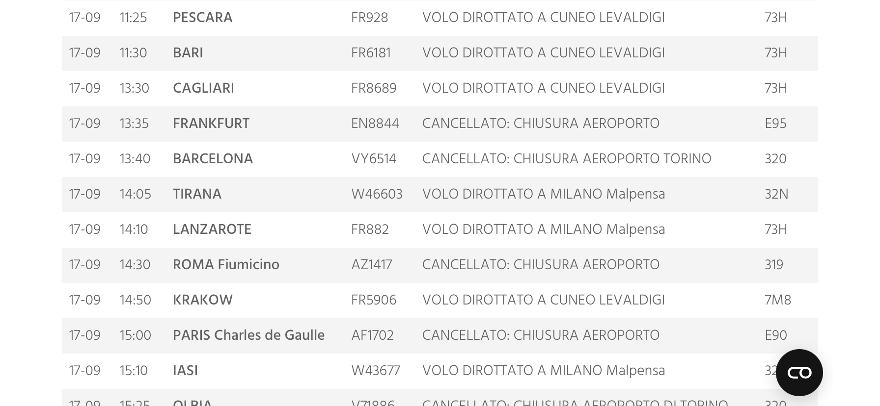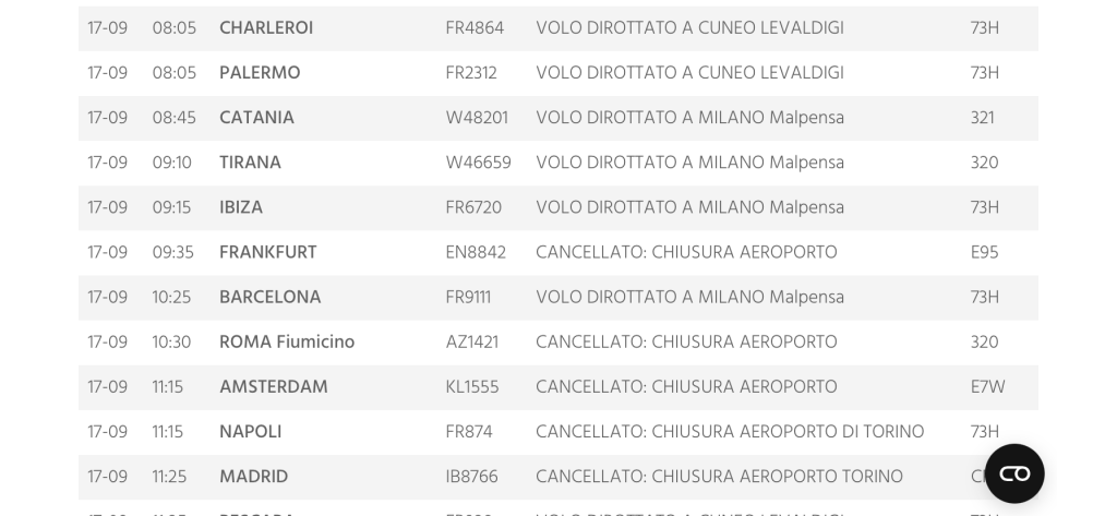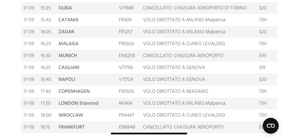 Questa e’ la situazione dei voli in arrivo a Torino nella giornata di oggi.
