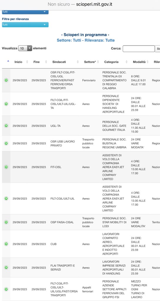La durata degli scioperi e’ diversa, vanno dalle 24 ore alle 4 ore.
