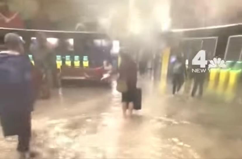 Come si vede dall’immagine di 4news le persone camminavano nell’acqua all’interno del terminal.