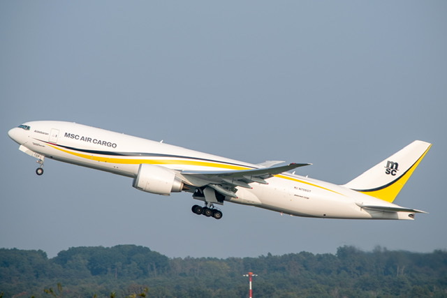 Nella foto il Boeing 777F N708GT nei colori di MSC Air Cargo operato da Atlas Air, fotografato da Andrea Ferrando a Milano Malpensa al decollo per Tokyo Narita.