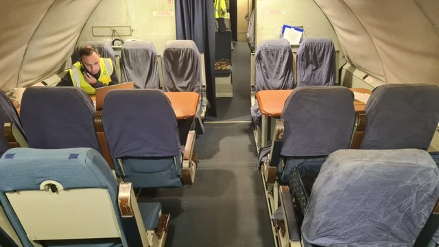 In totale l’aereo ha un equipaggio composto da 19 persone. Il velivolo trasporta con se la barra di traino e una sorta di fly away kit per la necessita’ di rimettere brevemente l’aereo di nuovo in condizioni di volo.
