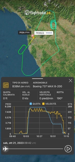 Ieri mattina poco dopo mezzogiorno un B737-8200 9H-VVF della Ryanair decollato da Pisa per Eindhoven non ha invece neanche superato gli Appennini.