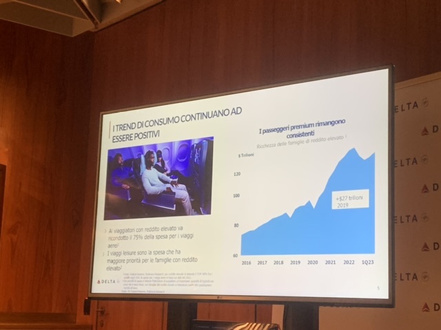 Guardando i mercati vede che e’ leisure e poco business su Roma e Venezia, invece Milano e’ al contrario. Ma non lasciamoci ingannare che cio’ sia un qualcosa di negativo o positivo a seconda degli scali. C’e’ chi viaggia per leisure , ma vola in premium economy o DeltaOne, la business class. Infatti dal lato Italia ci sono piu’ passeggeri da Milano, poi Roma, Venezia e gli altri mercati, perche Delta ha code share con Air France e KLM in partenza dagli scali italiani non serviti. Al contrario dagli USA vede il maggior numero di vendite su Roma e Venezia seguite da Milano. L’esatto contrario di tutto.