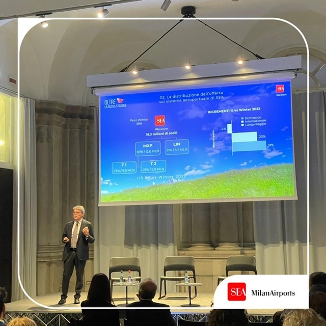 Nello speciafico del traffico Andrea Tucci – VP Aviation Development ha illustrato che oltre 18,3 milioni di posti saranno a disposizione di chi vuole partire o atterrare nei due aeroporti gestiti di Linate e Malpensa.12,6 milioni da Malpensa con il 77% al T1 e il 23% al T2. Linate gestira’ 5,7 milioni di passeggeri.Linate avra’ un piu’ 15% di sedili in piu’.