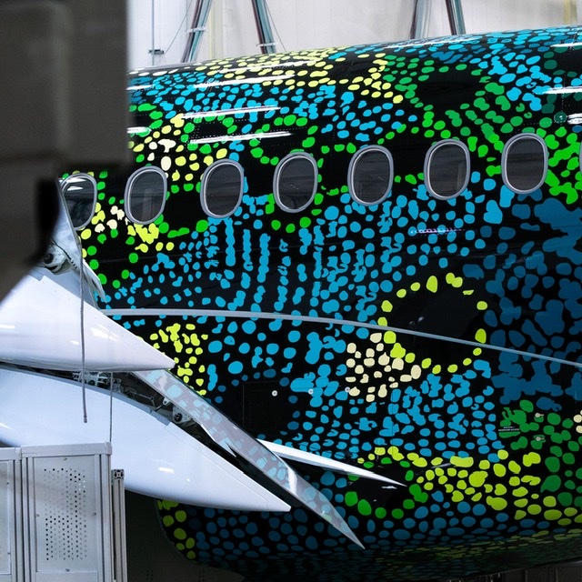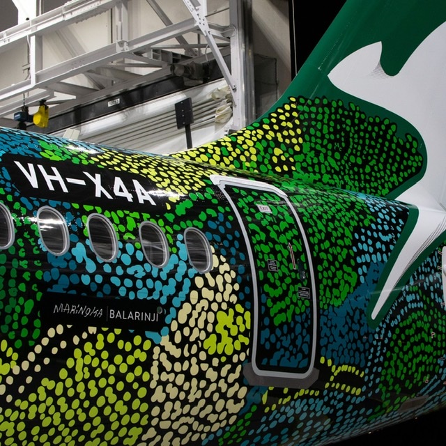 Infatti questo aereo mostra la livrea che riprende i temi dei Wunala Dreaming e poi Nalanji Dreaming, erano su Boeing 747.