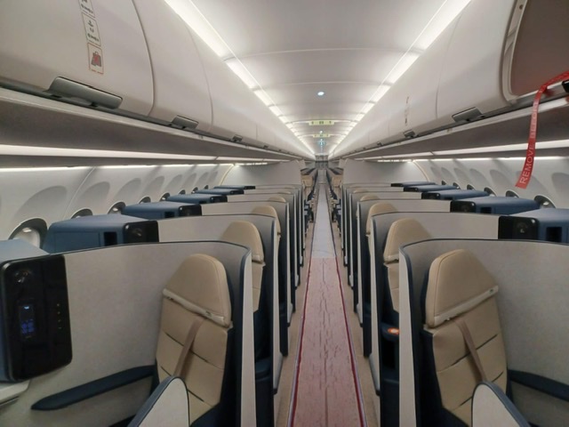 L’aeromobile ha quella speciale configurazione con 12 posti in business flat completamente lieflat, poi 12 posti in premium economy, 12 in comfort economy e 129 in classe economica.