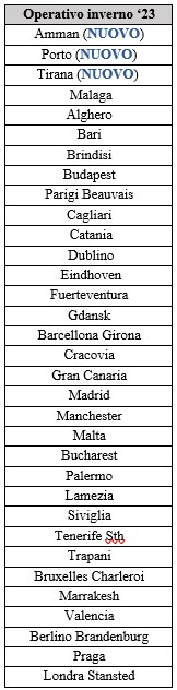 | Ryanair, la compagnia aerea no.1 in Italia, oggi (16 novembre) ha annunciato il nuovo operativo per l’inverno 2023 a Pisa con 33 rotte, incluse 3 nuove internazionali per Amman, Porto e Tirana e maggiori frequenze verso 6 destinazioni popolari che comprendono la soleggiata città di Valencia, Berlino e Praga, offrendo ai clienti/visitatori una scelta imbattibile per godersi una meritata vacanza invernale al sole o per viaggi di lavoro, istruzione e ricongiungimento con amici e familiari. L’operativo invernale di Ryanair comprenderà oltre 270 voli settimanali e supporterà oltre 2800 posti di lavoro, 210 dei quali diretti e la celebrazione di 50 milioni di passeggeri trasportati ad oggi. In occasione del venticinquesimo anniversario, Ryanair dimostra ancora una volta il suo costante impegno verso Pisa attraverso il raggiungimento di questo importante traguardo. L’operativo invernale ‘23 su Pisa include: – 50 milioni di passeggeri trasportati ad oggi – 7 aeromobili basati a Pisa – $700m investiti – 33 rotte da/per Pisa – 3 nuove rotte: Amman, Porto e Tirana – Maggiori frequenze verso 6 rotte, come Valencia, Berlino, Londra Stansted & Praga – Oltre 270 voli settimanali – 3.5M+ passeggeri stimati nel FY24 (+7% vs. FY23) – Sostegno a oltre 2800 posti di lavoro, compresi 210 altamente qualificati Per festeggiare l’operativo invernale Ryanair da Pisa, Ryanair ha lanciato una promozione speciale con tariffe a partire da €19.99 per viaggi compresi tra novembre 2023 e marzo 2024 disponibili solo sul sito Ryanair.com Mauro Bolla, Head of Communication di Ryanair per Albania, Cipro, Grecia, Italia e Romania, ha dichiarato: “Come compagnia aerea preferita in Italia, Ryanair è lieta di annunciare l’operativo da Pisa per l’inverno 2023, con tre nuove rotte verso Amman, Porto e Tirana (33 totali), così come maggiori frequenze verso sei destinazioni per vacanze invernali e per city break come Valencia, Berlino e Praga, offrendo ai nostri clienti di Pisa una selezione ancora più ampia per le vacanze invernali alle tariffe più basse d’Europa. Ryanair celebra 50 milioni di passeggeri dall’inizio delle operazioni da/per Pisa. Siamo lieti di festeggiare il raggiungimento di questa pietra miliare per il venticinquesimo anniversario di attività; Ryanair dimostra ancora una volta il costante impegno verso Pisa e la Regione Toscana. Per festeggiare l’operativo invernale da Pisa, Ryanair ha lanciato una promozione speciale con tariffe a partire da €19.99 per viaggi compresi tra novembre ’23 e marzo ’24 su Ryanair.com”. Toscana Aeroporti, ha dichiarato: “L’annuncio delle 3 nuove rotte invernali verso Amman, Porto e Tirana testimonia ancora una volta il forte commitment di Ryanair sull’aeroporto di Pisa e la stretta collaborazione con Toscana Aeroporti. Il costante ampliamento delle destinazioni, infatti, amplia ulteriormente il network di connessioni della nostra Regione con importanti destinazioni internazionali contribuendo a promuovere il turismo e a facilitare gli scambi culturali ed economici”. |