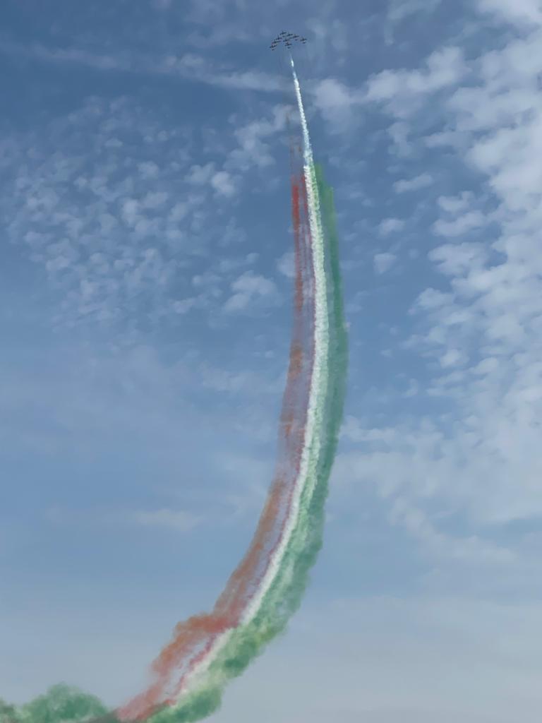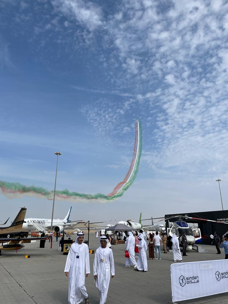 La pattuglia acrobatica ha mostrato i suoi colori e le manovre acrobatiche delle sue figure agli occhi del mondo aeronautico convenuto a Dubai per una manifestazione che sempre di pium si sta caratterizzando come un evento per eccellenza mondiale.