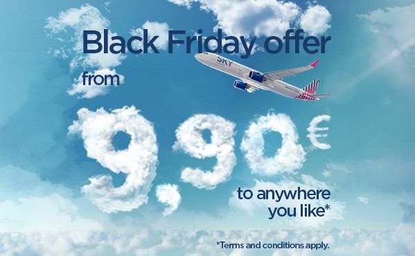 Con l’offerta Black Friday di quest’anno i passeggeri SKY Express possono prenotare il proprio volo a partire da soli 9,90 euro per una o più destinazioni e viaggiare ovunque con bagaglio a mano e un oggetto personale gratis!