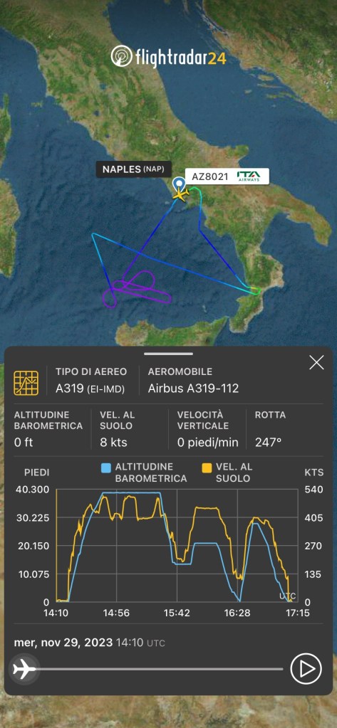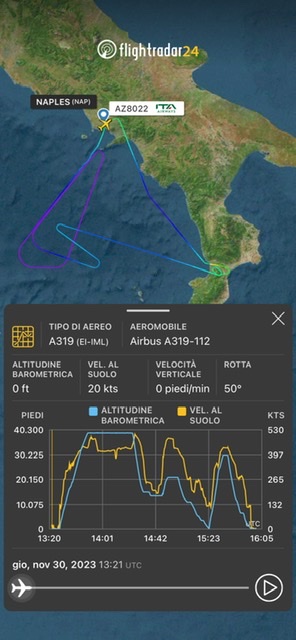 I due velivoli con marche EI-IMD e EI-IML, li hanno effettuati come AZ8021 e AZ8022. Tutti e due sono stati operati sorvolando il Mar Tirreno e la Calabria effettuando anche un avvicinamento a Lamezia Terme non conclusosi con l’atterraggio.