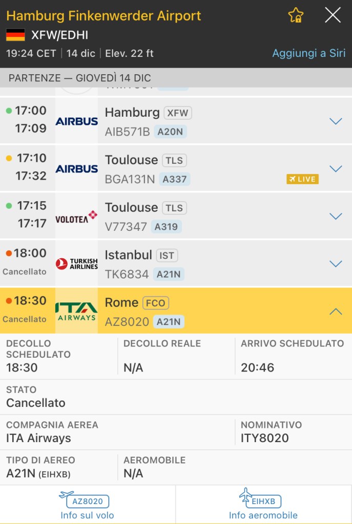 Alle 18:30 di questa sera è previsto il decollo da Amburgo Finkerwerder del secondo A321neo per ITA Airways.