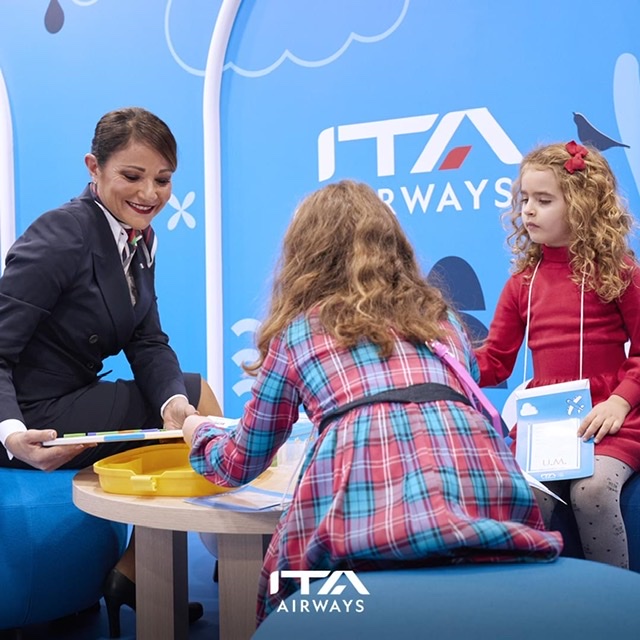 Oggi ITA Airways ha inaugurato la Lounge Fantasia, la nuova sala dedicata ai minori non accompagnati situata al Terminal 1 dell’Aeroporto Leonardo da Vinci di Roma Fiumicino. Presenti all’inaugurazione Andrea Benassi, Direttore Generale della Compagnia e Giovanni Perosino Chief Marketing Officer, che hanno presentato alla stampa italiana e ad ospiti istituzionali le novità che ITA Airways offre ai più piccoli.