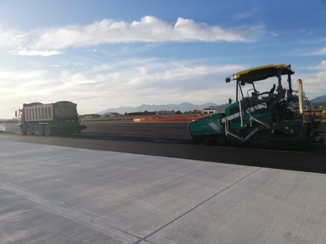 Nella foto i lavori di completamento sulla pista di volo portata a 2000 metri di lunghezza.