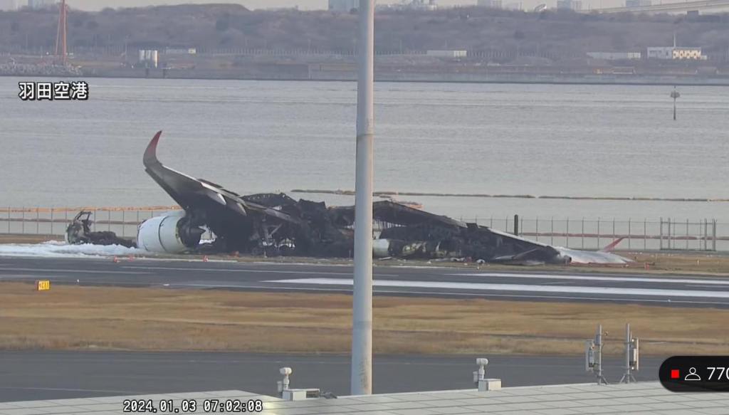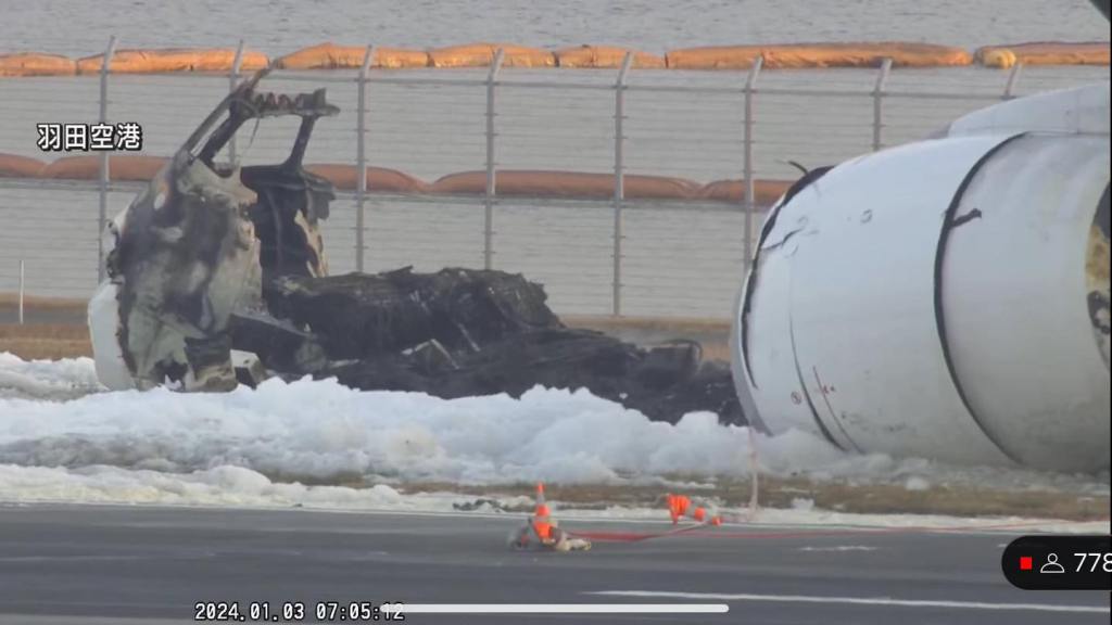 Come in poco tempo, con le immagini di Asahi TV News, si mostra nell giornata di oggi alla luce del giorno il relitto, cioè i resti di cio’ che rimane dell’Airbus 350-900 JAL a Haneda. L’aereo nella serata di ieri a Haneda è andato a fuoco dopo aver terminato il breve volo da Sapporo Chitose con quasi 400 passeggeri a bordo. Tutti poi evacuati prima che l’aereo venisse distrutto dal rogo.