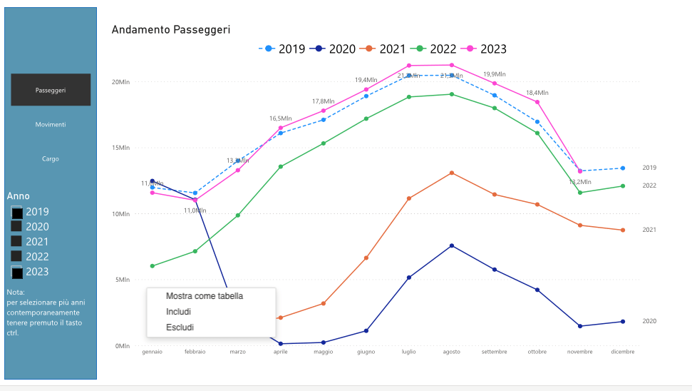 | 22 | Milano Malpensa | 186.106 | 8,1 | -14,4 | 24.114.120 | 22,6 | -9,9 | 613.022,8 | -7,6 | 20,3 |