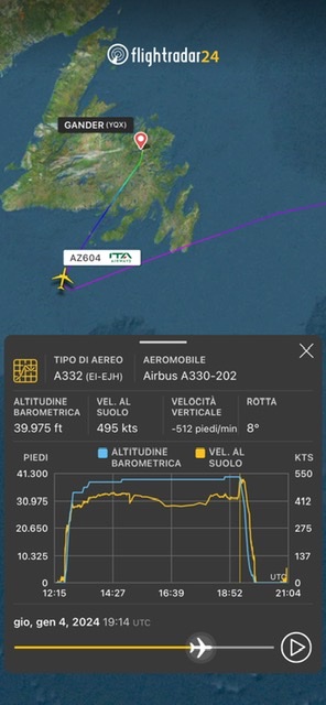 Nella giornata di ieri questo Airbus 330-202 EI-EJH di ITA Airways e’ atterrato fuori programma a Gander come rivela sui social Allied Aviation.