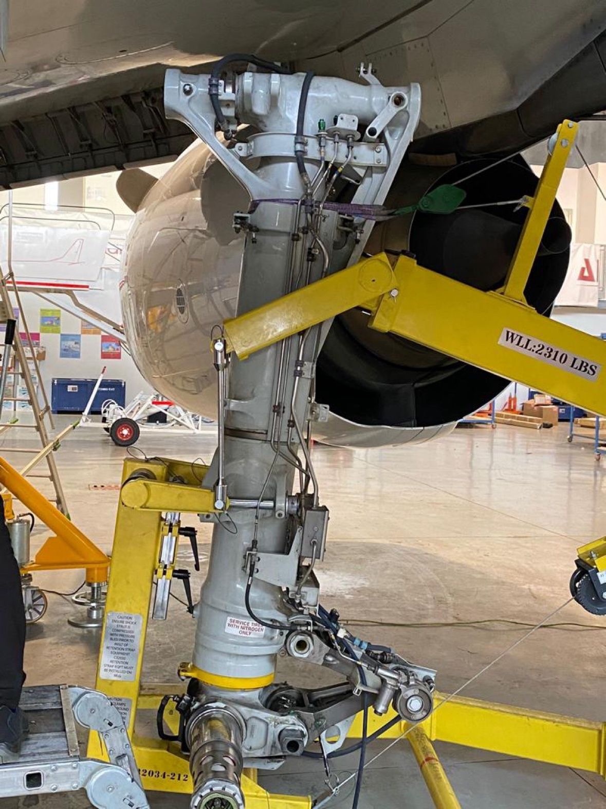 Nella foto di Albatechnics c’e’ la sostituzione di un carrello principale di un Boeing 737/800.