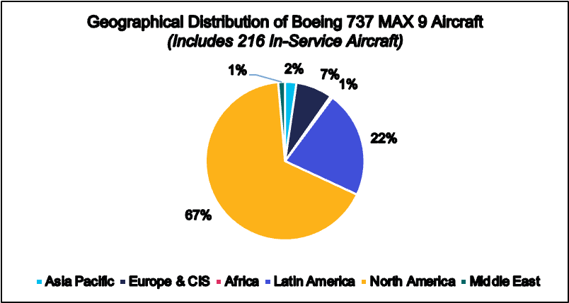 - La maggior parte dei 737 MAX 9 in servizio sono operati in Nord America, in particolare negli Stati Uniti, con 144 aeromobili che rappresentano due terzi della flotta di 216 aeromobili –