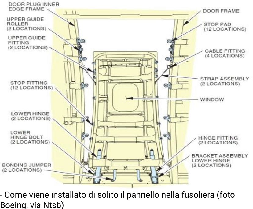 Nella foto pubblicata da Corriere.it originante da NTSB vi e’ il complessivo della mid cabin exit plug installata sugli aerei oggetto ora di verifica.