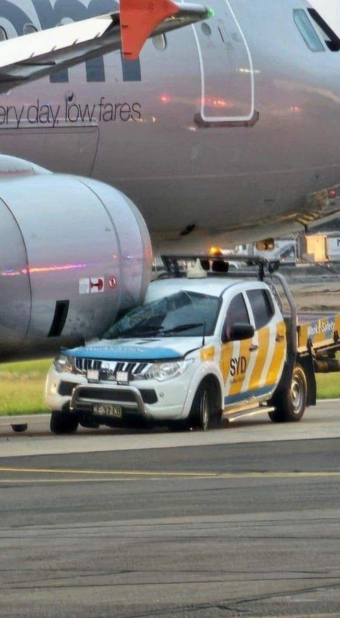 Cio’ che osservate nelle immagini e’ l’evento accaduto all’aeroporto di Sydney quando un pickup di servizio dell’aeroporto australiano e’ entrato in collisione con l’aereo della compagnia aere australiana JetStar.