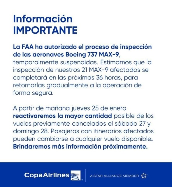 COPA Airlines ha ricevuto l’approvazione da FAA – Federal Aviation Administration per il sistema di ispezione dei Boeing 737-9 MAX.