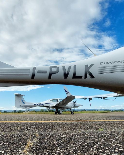 La flotta della scuola e’ composta da 9 aerei, sette sono monomotori del tipo Diamond DV20 e DV40. Poi Piper PA-28 e General Avia F22R. Quindi due bimotori DA-42 equipaggiati con un glass cockpit. Un capitale importante valutato cone dice Montefiori in alcuni milioni di €. Non tutti i velivoli sono digitali , alcuni sono analogici per dare la confidenza agli allievi della differenza di stato dell’arte che l’avionica ha compiuto con il suo sviluppo tecnologico. Oltre a cio’ effetti come l’isterisi si notano assolitamente su uno strumento analogico, piuttosto che uno digitale.