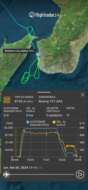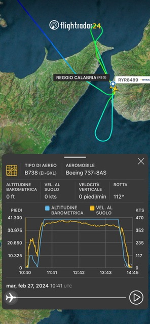 Quindi lo stesso giorno ha compiuto un volo Reggio Calabria – Reggio Calabria come FR8488.