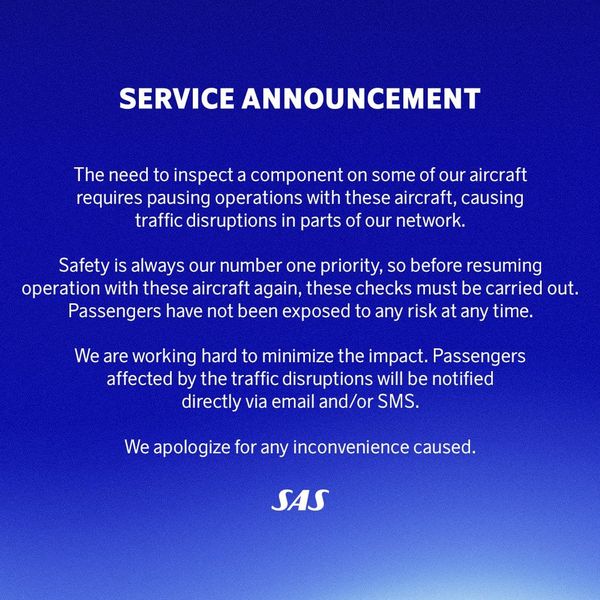 La mancanza di 18 dei 38 aerei in servizio potrà creare problemi all’operatività del network del vettore scandinavo.
