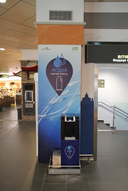L’aeroporto di Bologna ha da qualche giorno introdotto degli erogatori di acqua potabile che possono permettere ai passeggeri in partenza di usufruire gratuitamente di questo servizio per riempire bottiglie/borracce.