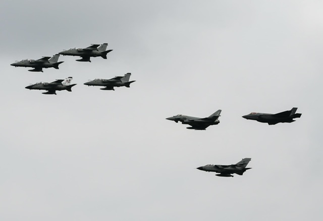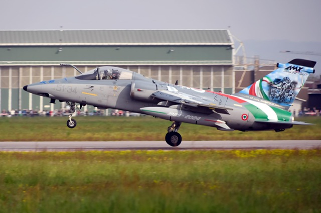 pista della base trevigiana, a questa si è aggiunta la PAN con 4 MB 339 e poi Typhoon, Tornado e F 35, che rimarranno la linea caccia in forza all’AM.