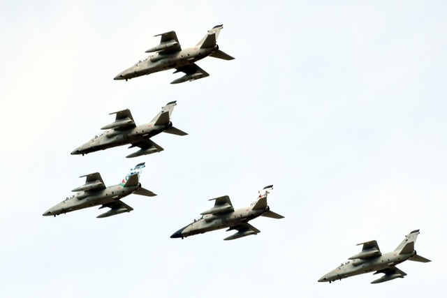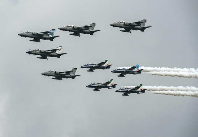 Una formazione mista con il velivolo special color come leader ha sorvolato per diverse volte la