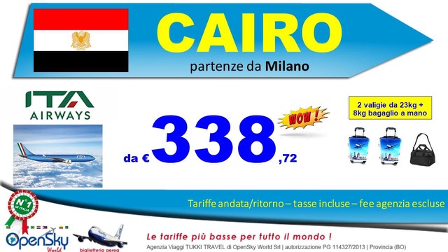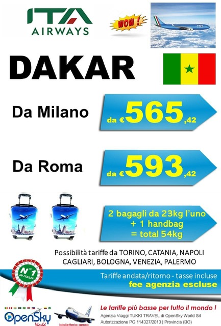 Qui ITA Airways propone per entrambe le destinazioni con due bagagli in stiva e un bagaglio a mano per la cabina passeggeri.