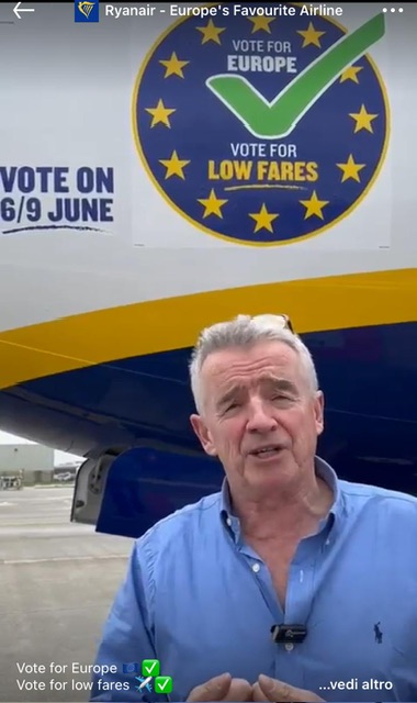 In un messaggio di Michael O’Leary – group CEO Ryanair invita tutti i cittadini europei a votare tra il 6 e 9 giugno per le elezioni per il rinnovo del parlamento europeo.