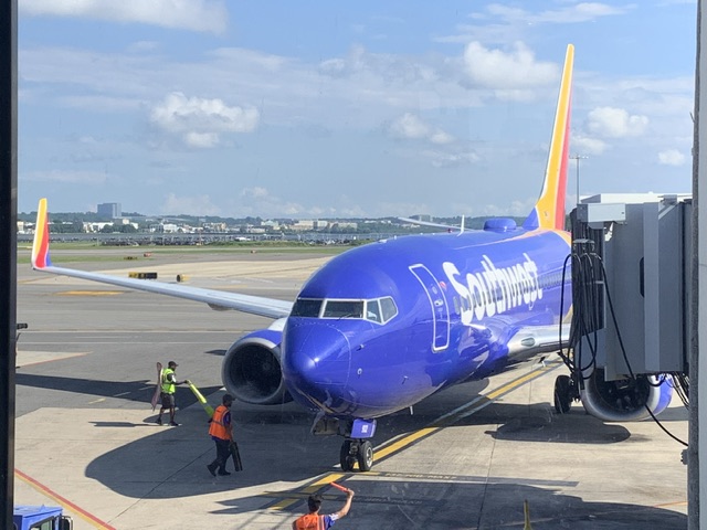 Al gate Southwest ci sono dei totem per come imbarcarsi, si formano le due file da 30 persone a fianco con spazi per 5, tutti in fila e ordinati.