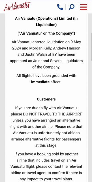 Il vettore di bandiera di bandiera Air Vanuatu, nel sud pacifico e’ entrato oggi in stato di bancarotta e ha cessato tutti i voli.