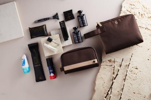 L’offerta maschile di Business Class presenta due borse in tessuto marrone castagna con accenti in ecopelle color crema, in stile palmare e con la classica forma di una borsa da toilette. La fragranza inclusa in questi kit è BVLGARI MAN IN BLACK Eau de Parfum, l’iconico best seller maschile del marchio. Alberto Morillas, maestro profumiere di questa firma olfattiva ambrata e speziata, esprime una fragranza magnetica con note di spezie vibranti e un accordo di cuoio. Ispirati allo stesso profumo iconico, sono inclusi un balsamo dopobarba e una lozione per il corpo complementari al profumo BVLGARI MAN IN BLACK, oltre a un rasoio Gillette, una schiuma da barba, un kit dentale, tappi per le orecchie, un deodorante, fazzoletti e una spazzola pieghevole in fibra.