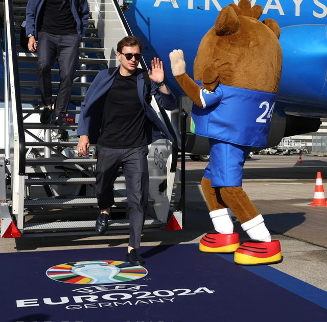 L’aereo che ha trasportato gli Azzurri della Nazionale Italiana di Calcio e’ arrivato sotto un bellissimo sole a Dortmund.