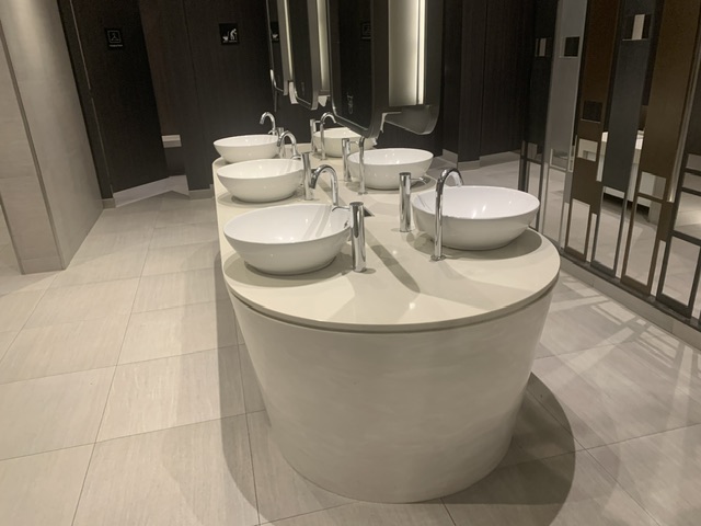 Ovviamente il tutto e’ integrato stilisticamente sia con specchi e luci per rendere piu’ attraente un ambito dove transitano praticamente tutti, prima o dopo un volo.