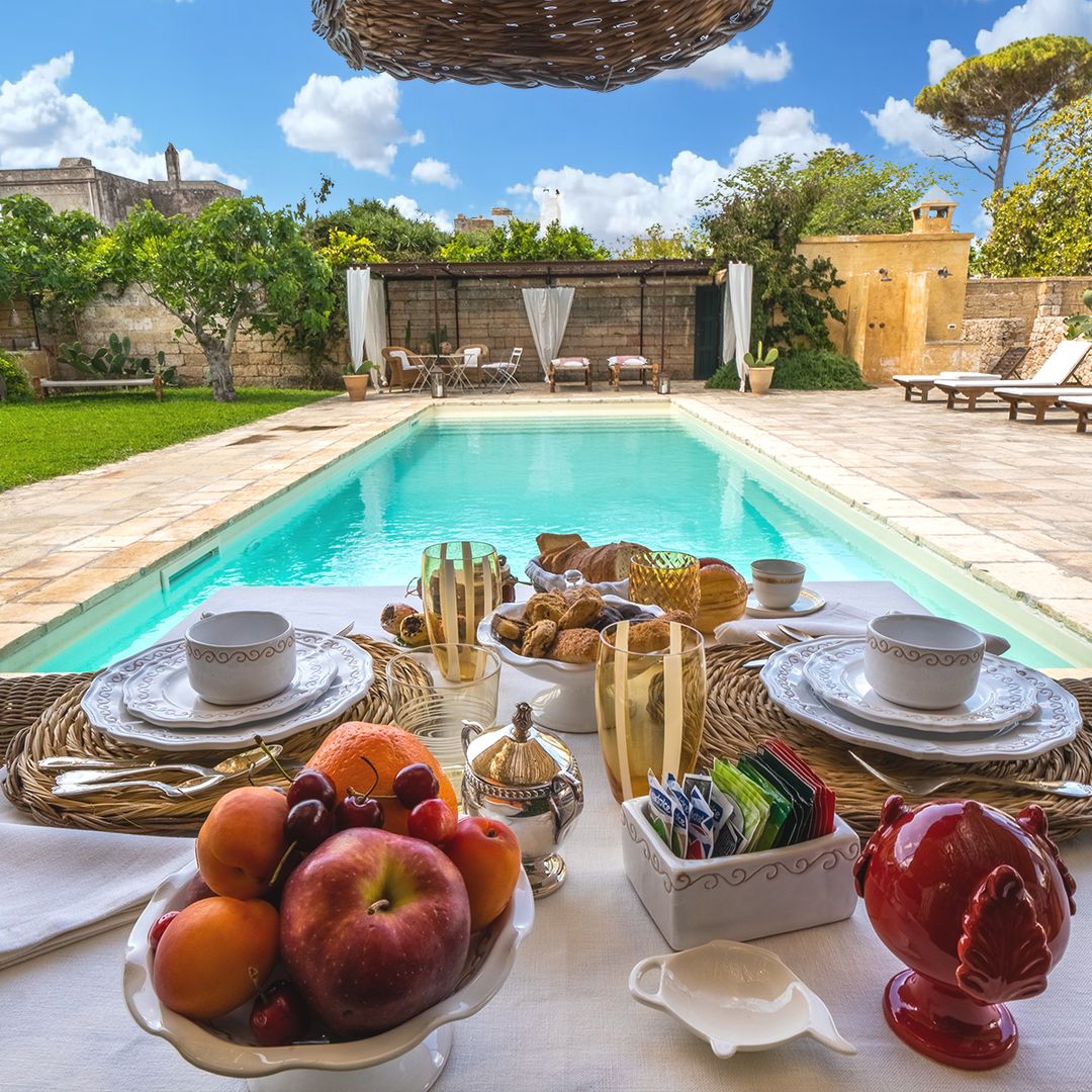 La giornata inizia con una colazione Bio preparata con ingredienti freschi e locali, servita con vista sulla piscina sotto un fresco gazebo. Questa colazione a Km 0 è un vero piacere per il palato, perfetta per iniziare una giornata di scoperte nella regione.