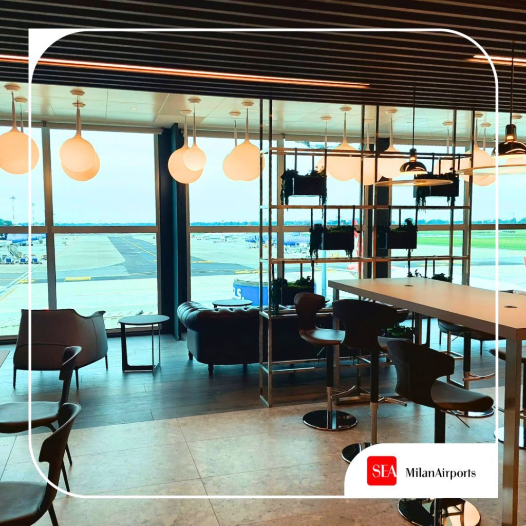 L’ampliamento della Lounge Leonardo con uno splendido affaccio sul piazzale aeromobili di #liinate è stato progettato in continuità stilistica con l’esistente. La nuova area si articola in tre spazi: Working Area, Food & Beverage Area e Panoramic Area.