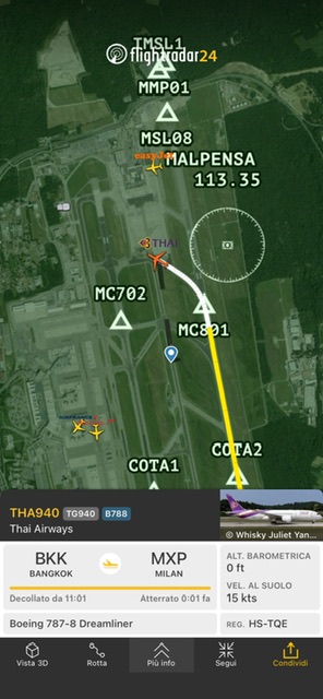 Con una quarantina di minuti di anticipo stamani a Milano Malpensa e’ arrivato il primo volo della Thai Airways proveniente da Bangkok.