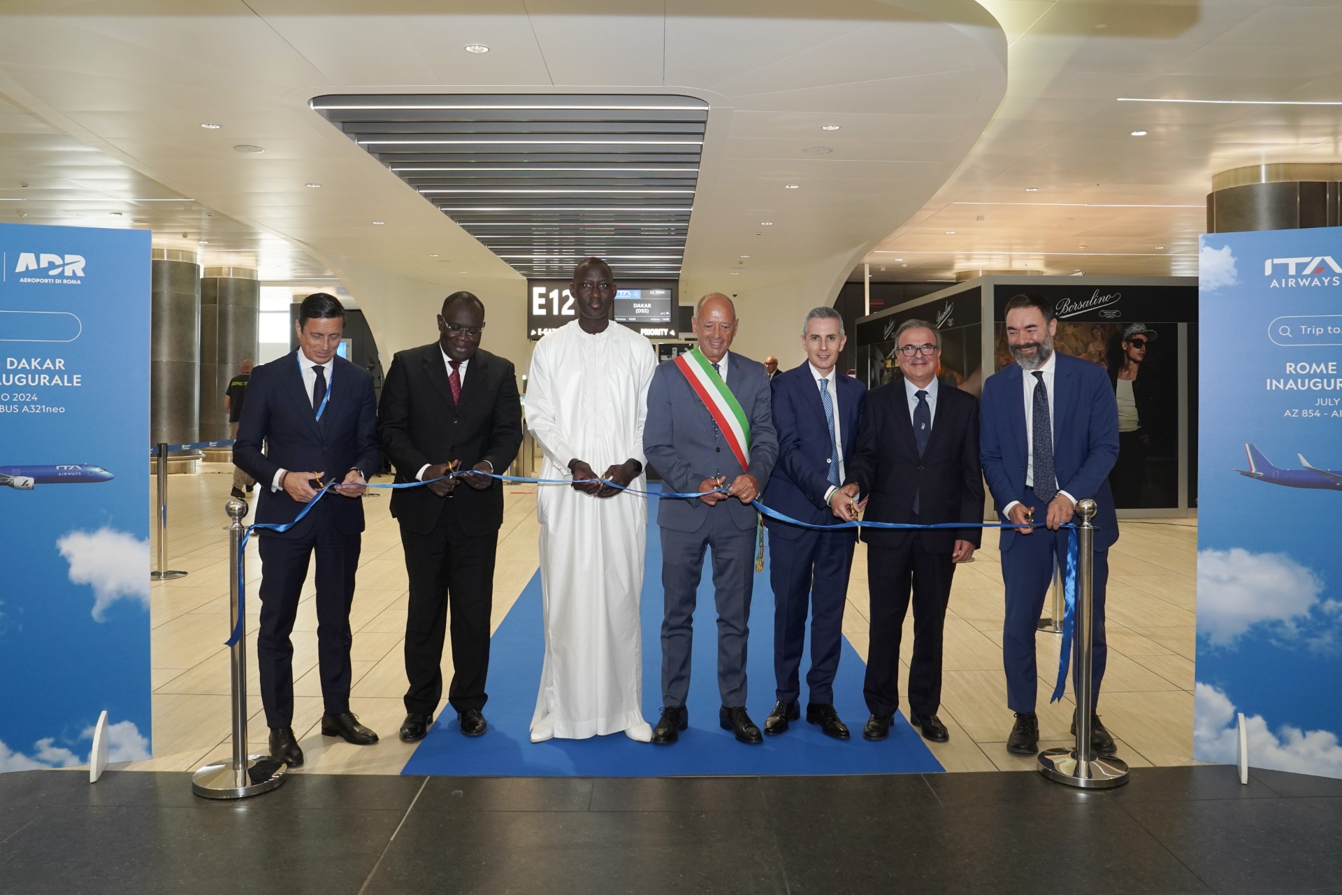 Presenti alla cerimonia del taglio del nastro presso il Terminal E dell’aeroporto Leonardo da Vinci di Fiumicino Tommaso Fumelli, Vice President Italy Sales ITA Airways; Federico Scriboni, Aviation Business Development Director di Aeroporti di Roma; Ngor Ndiaye, Ambasciatore del Senegal in Italia; Consigliere Mario Bartoli, Capo dell’Ufficio per i Paesi dell’Africa Centrale e Occidentale della Direzione Generale per la Mondializzazione e le Questioni Globali del MAECI; Ascenzo Forte, Responsabile Direzione Relazioni istituzionali e Comunicazione di ENAC e Raffaello Biselli, Assessore Commercio e Mercati, attività produttive e Suap del Comune di Fiumicino.