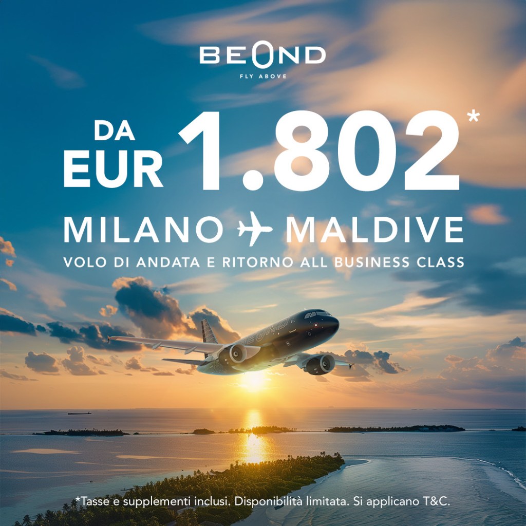 26 sono stati i passeggeri a bordo del primo volo BeOnd da Milano Malpensa a Male.