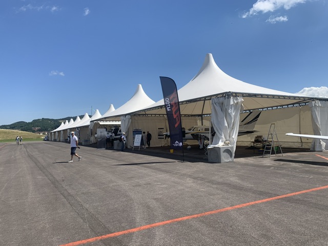 Gia’ ieri parte del sedime erboso aveva iniziato ad ospitare i velivoli che sono attesi a questa manifestazione aeronautica, la quale ospita anche componentistica aeronautica e non solo aerei.