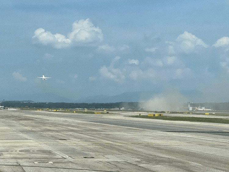 Questo è quello che scrive The Aviation Herald sull’accaduto e c’è una immagine scattata dal piazzale. Chi ha fatto questa foto è stato sicuramente attratto dal fumo causato dal contatto tra fusoliera con la superficie della pista 35L quando l’aereo era nella fase di rotazione.
