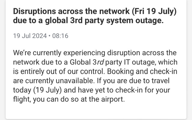 Non solo Ryanair, ma anche altri servizi informativi gestiti da terzi da stamani stanno assistendo a problematiche di funzionaita’ informatiche.
