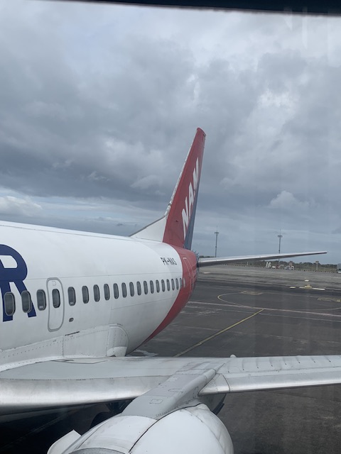 Ci imbarchiamo come in un normale volo tramite jetway e oggi il nostro aereo e’ un B737-524. Quindi il codice ci fa risalire a quel customer code ora non piu’ in uso e assegnato tanto tempo fa’ a Continental Airlines. La costruzione e’ del tardo 1994, poi l’aereo e’ passato alla United Airlines quando le due aerolinee si sono accorpate, mantenendo la stessa matricola N19621. Poi 18 anni dopo nel dicembre 2012 passa a Sriwijaya Air. L’aereo era fermo da un paio di mesi e volo’ dal continente americano all’Indonesia assumendo le marche PK-CLO. Qui cambia leggermente l’interno da C8Y106 a C8Y112. Ottiene il nome “Kehormatan”.