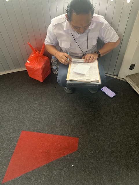 Ma prima di imbarcarci vediamo un’altra cosa che e’ molto rara a vedersi, cioe’ la compilazione dei documenti di centraggio rigorosamente fatti a mano con righello, penna e calcolatrice. Oggi, la quasi totalita’ e’ documentazione preparata in formato automatizzato.