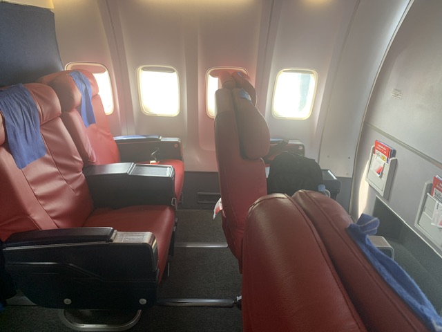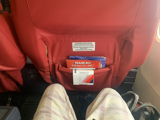 Quindi dopo questo escursus continuiamo , che l’aereo per un volo nazionale non ha una singola classe, ma una doppia classe e come si rispetti la Golden Class di Nam Air e’un lay out di tipica provenienza americana, 2-2 di abreast per fila. Le poltrone hanno generosissimi spazi per le gambe e non solo per quelle. Infatti anche la larghezza del sedile e’ molto ampia grazie alla dimensione ampia della cabina interna del B737. Poi sono solo due file.