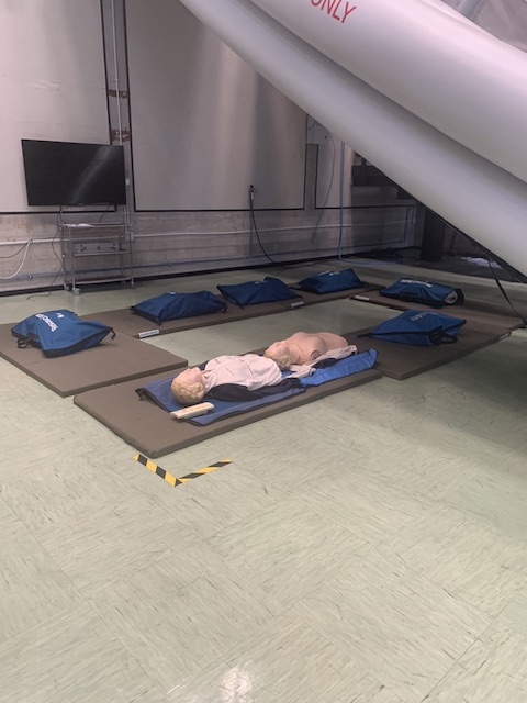 Si parte da tutti quelli che sono i suoi compiti come le procedure di imbarco e sbarco, evacuazioni aeromobile con l’utilizzo di scivoli che simulano l’esatta altezza da terra di un aereo e altre emergenze particolari. Oltre a prove pratiche di spegnimento di un incendio a bordo.